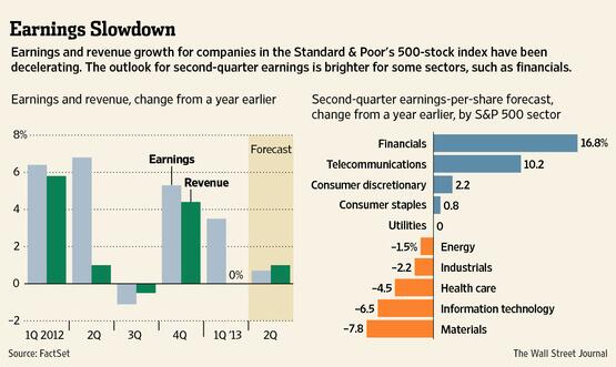 Alcoa announced earnings today, beating estimates by $.01. However, the earnings trends have been decelerating. Check out this graphic from the Wall St Journal (source: https://twitter.com/WSJGraphics/status/354336195683184640/photo/1):